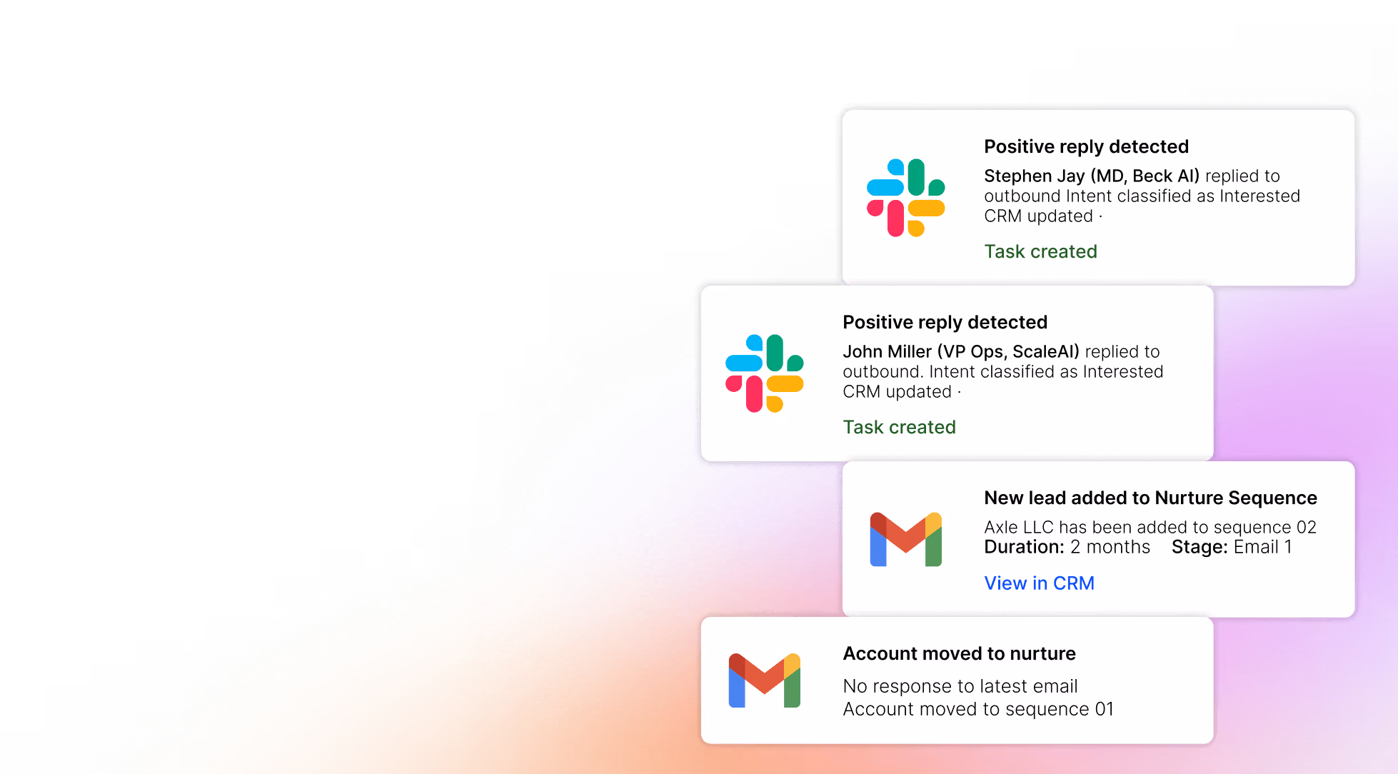 Inbound leads, replies, and high-intent signals automatically trigger alerts to the right SDRs.